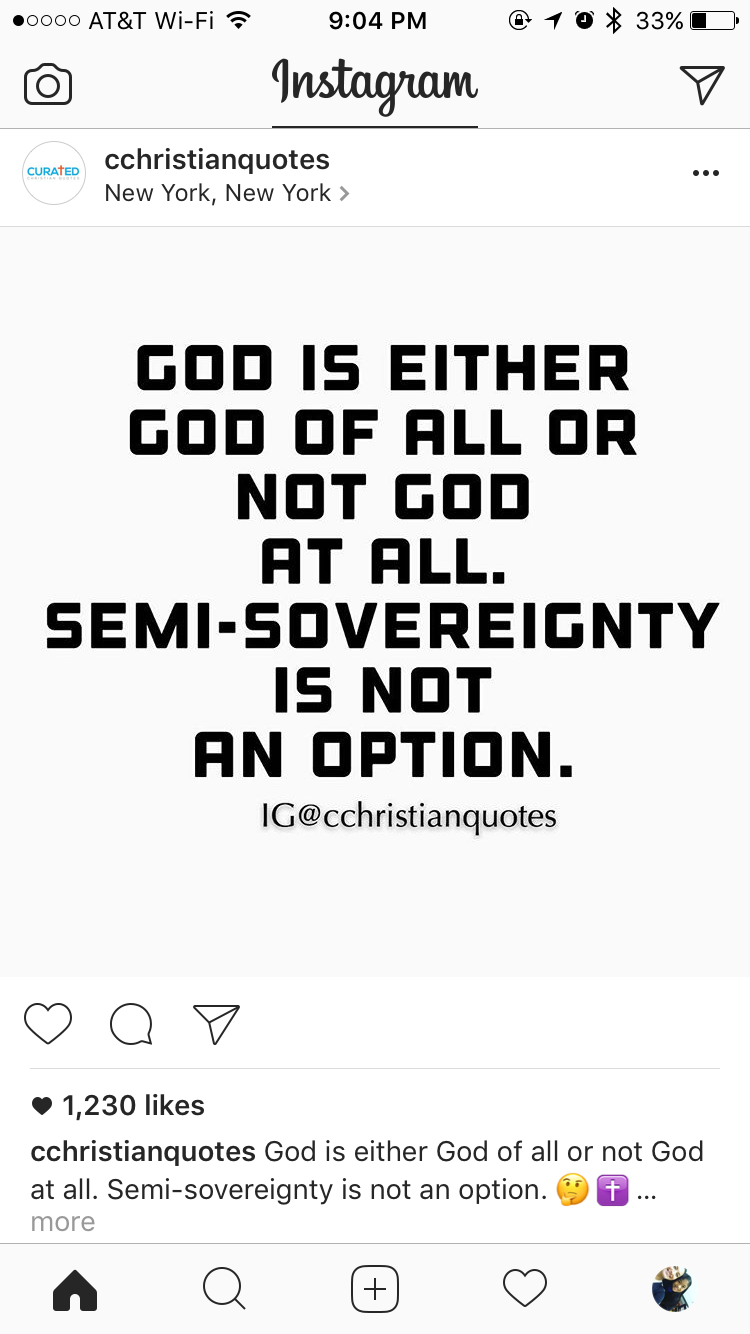 Our lord reigns over everything under the canopy of earth. You either trust him in all or not. There is no half way. The good news is that he is always there when we fault and confess our sins.